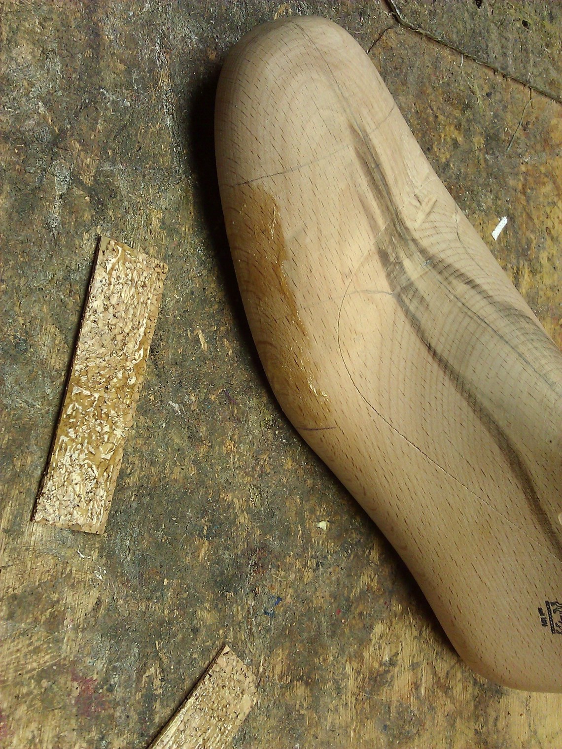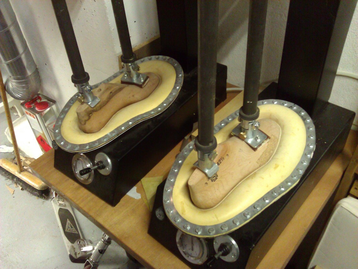 De dag heb ik afgelsoten met het klaarmaken van de binnenzolen. Die zie je zitten in de pers onder de leesten.