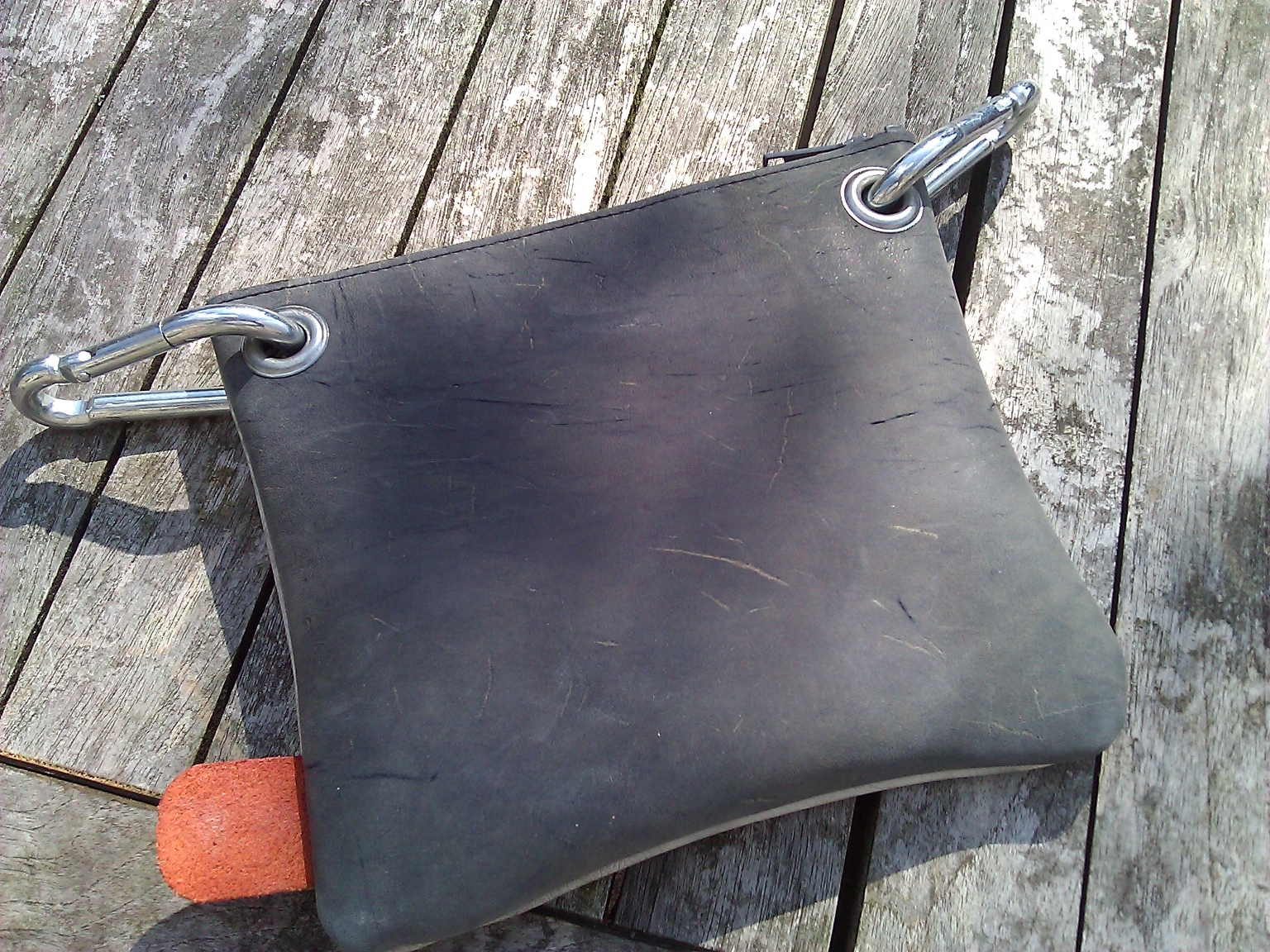 Handmade leather bag with eyelets back