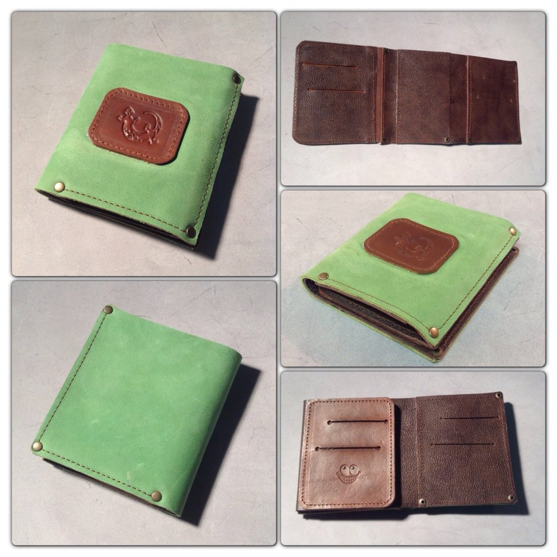 This is the last creation I finished in 2012. It is a handmade leather wallet in green and brown leather.