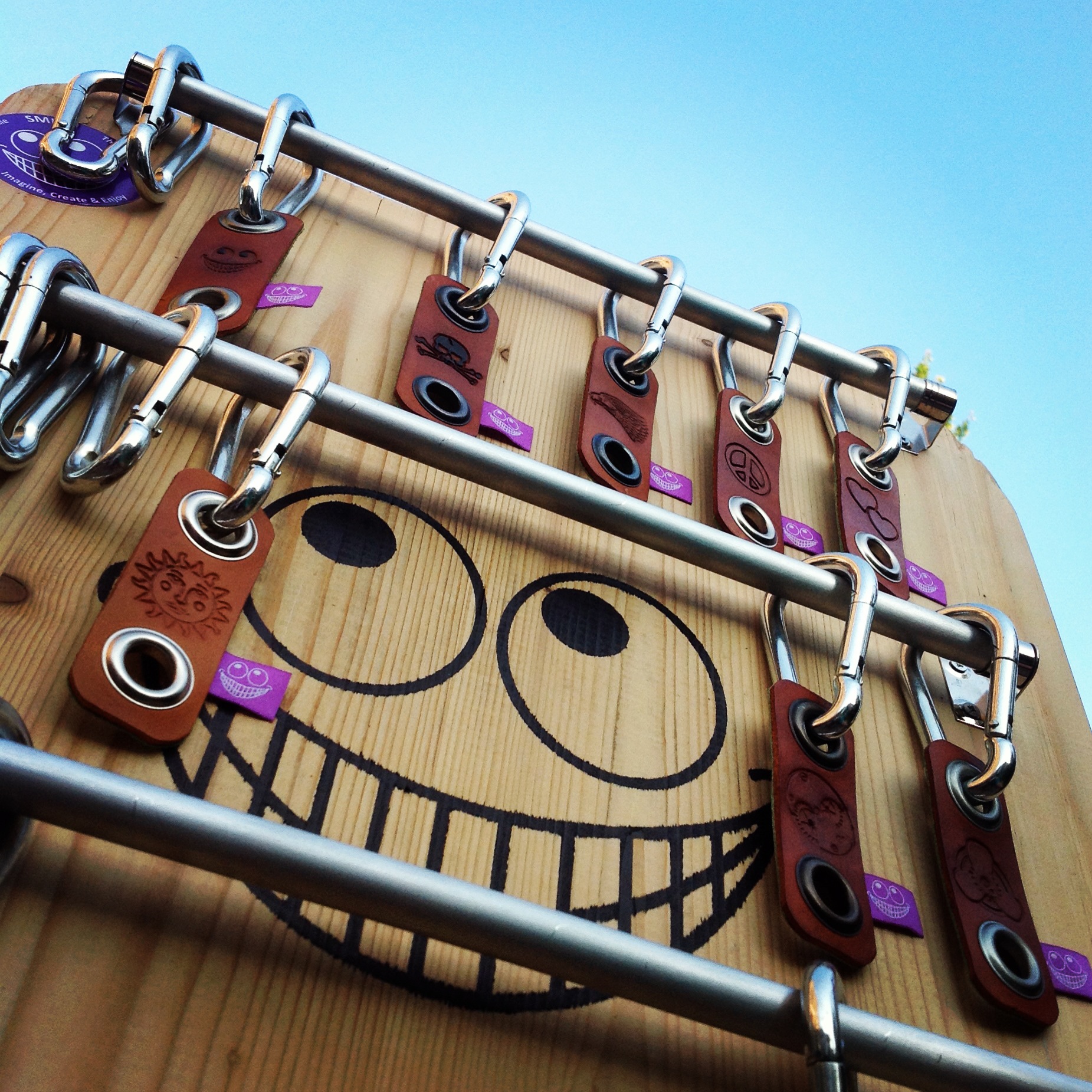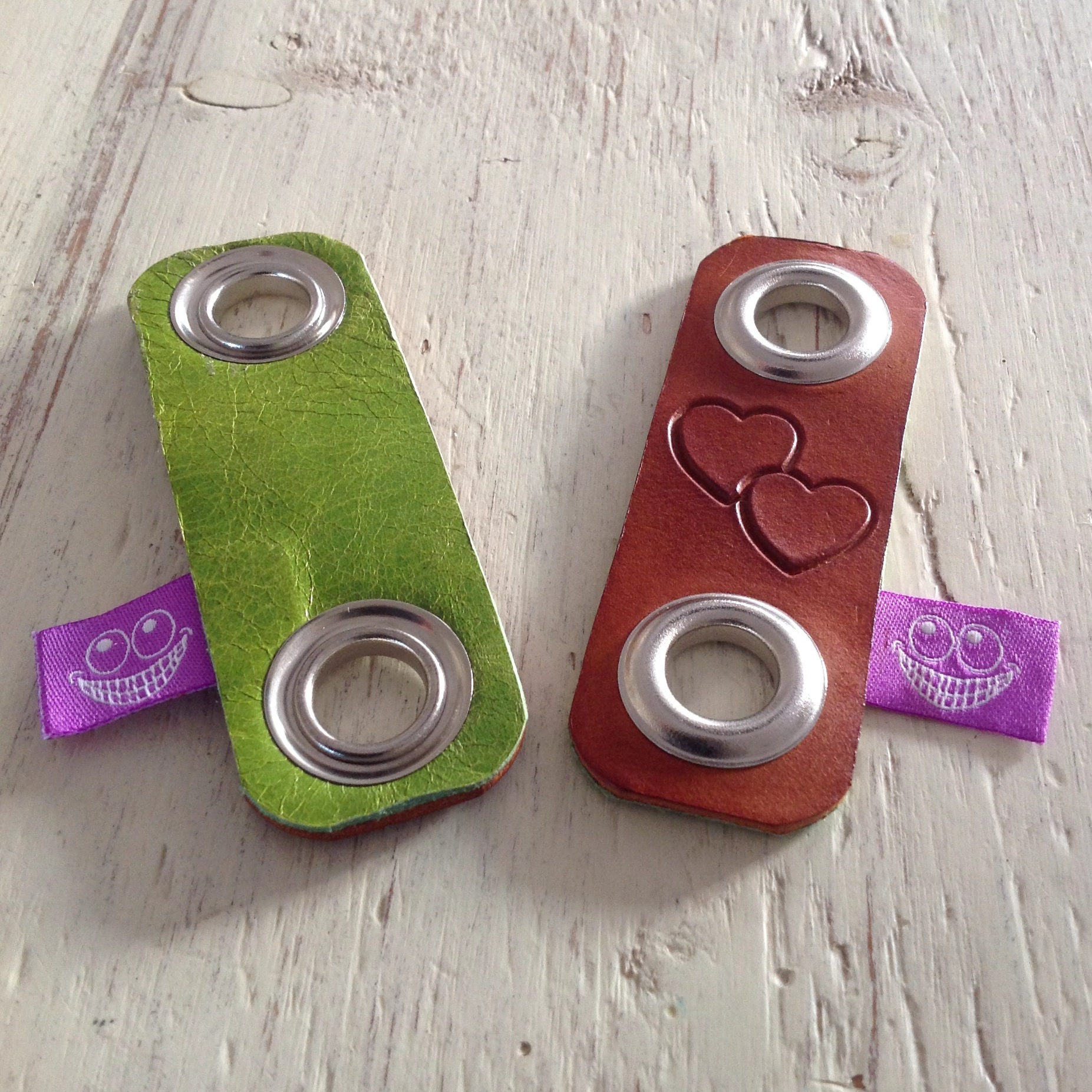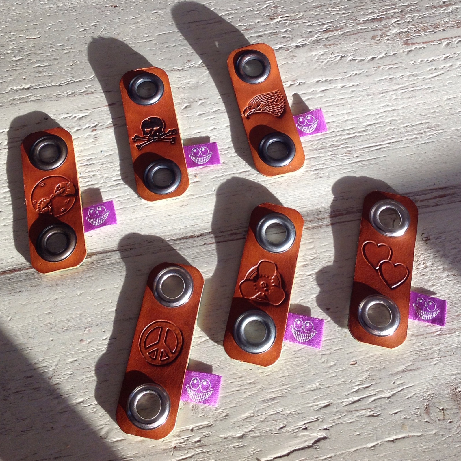 I created these BagStrapExtenders to pimp and extend the shoulder strap of a bag. I used vegetable tanned leather I stamped and painted. On the back I glued a nice green color leather. Of course you can also use these as key rings.