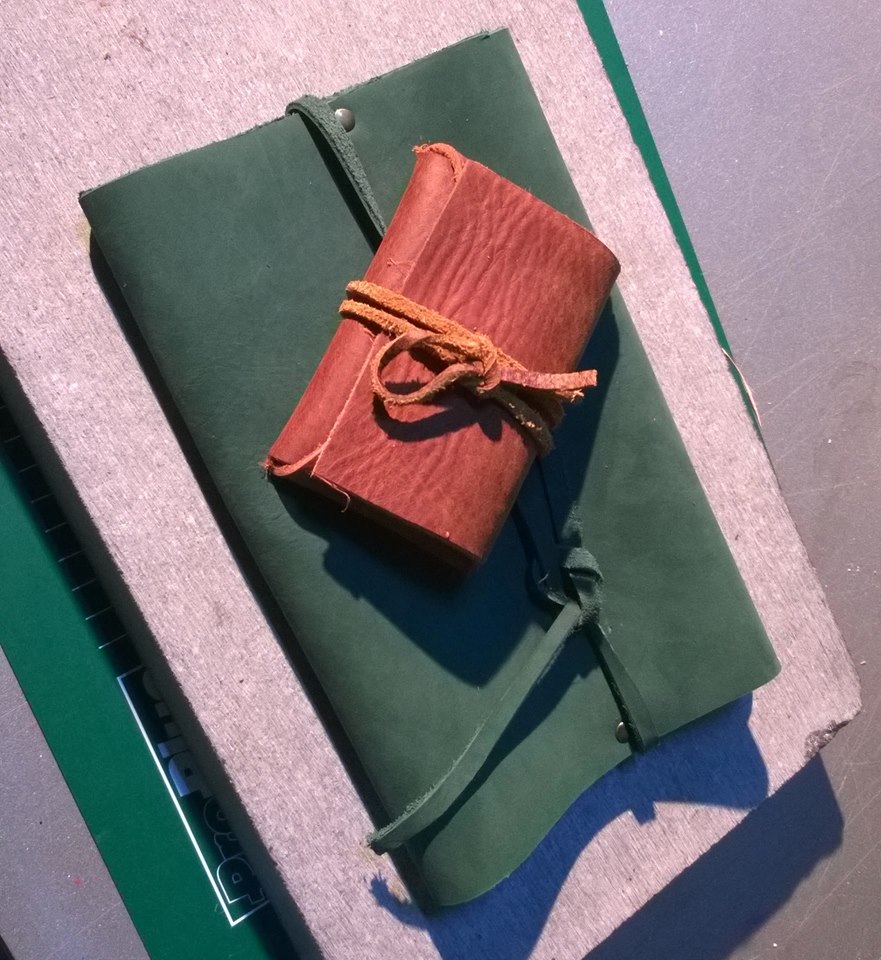Tijdens de workshop doen we alles met de hand. Het begint bij een mal maken van karton – kiezen van leer – aftekenen – snijden – plakken en dan alles aan elkaar stikken met naald en draad. Eventueel nog wat ijzerwaren als holnieten of drukknopen toevoegen en klaar!