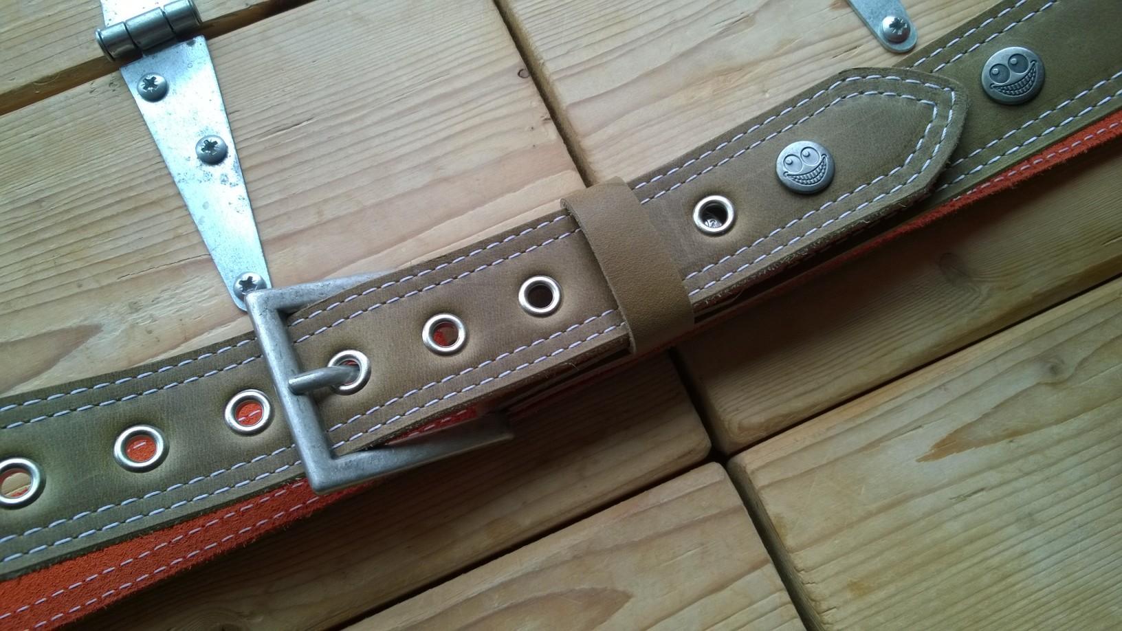 Green leather belt with TheCrazySmile