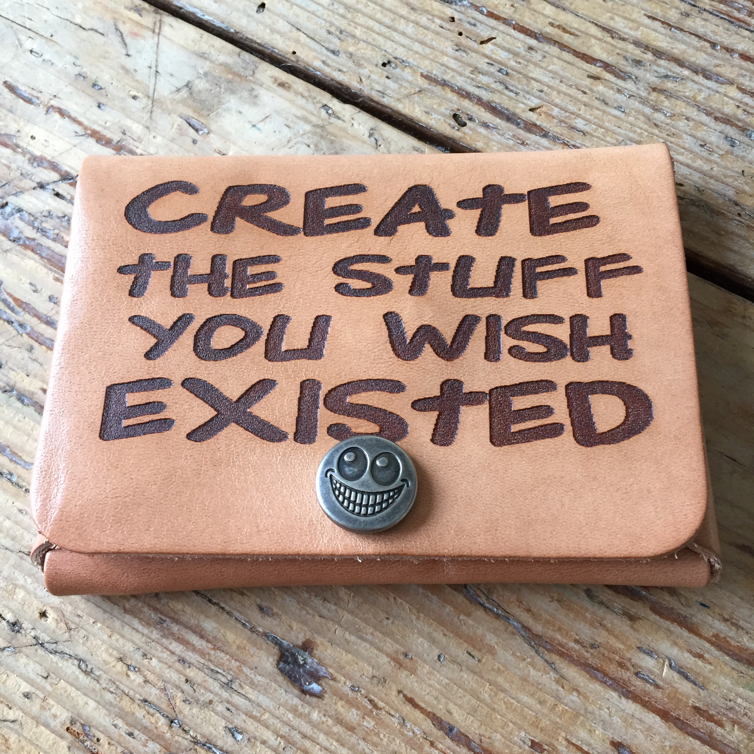 It actually arrived a few weeks back and I have been playing around a bit to test materials and options. I really love the laser engraving results on leather and wood. Cutting wood and Plexiglas is also fun. Below you find a few things I made for people I know, to help them out and for useful testing of the machine. The great thing is that where I needed to do cutting and stamping by hand or create a custom stamp I now only need a picture to create a custom design in leather. Of course this does not replace the great effects the other technics give, but it does add enormous potential. A nice key ring with a logo or even a photo engraved in it is now easily done.