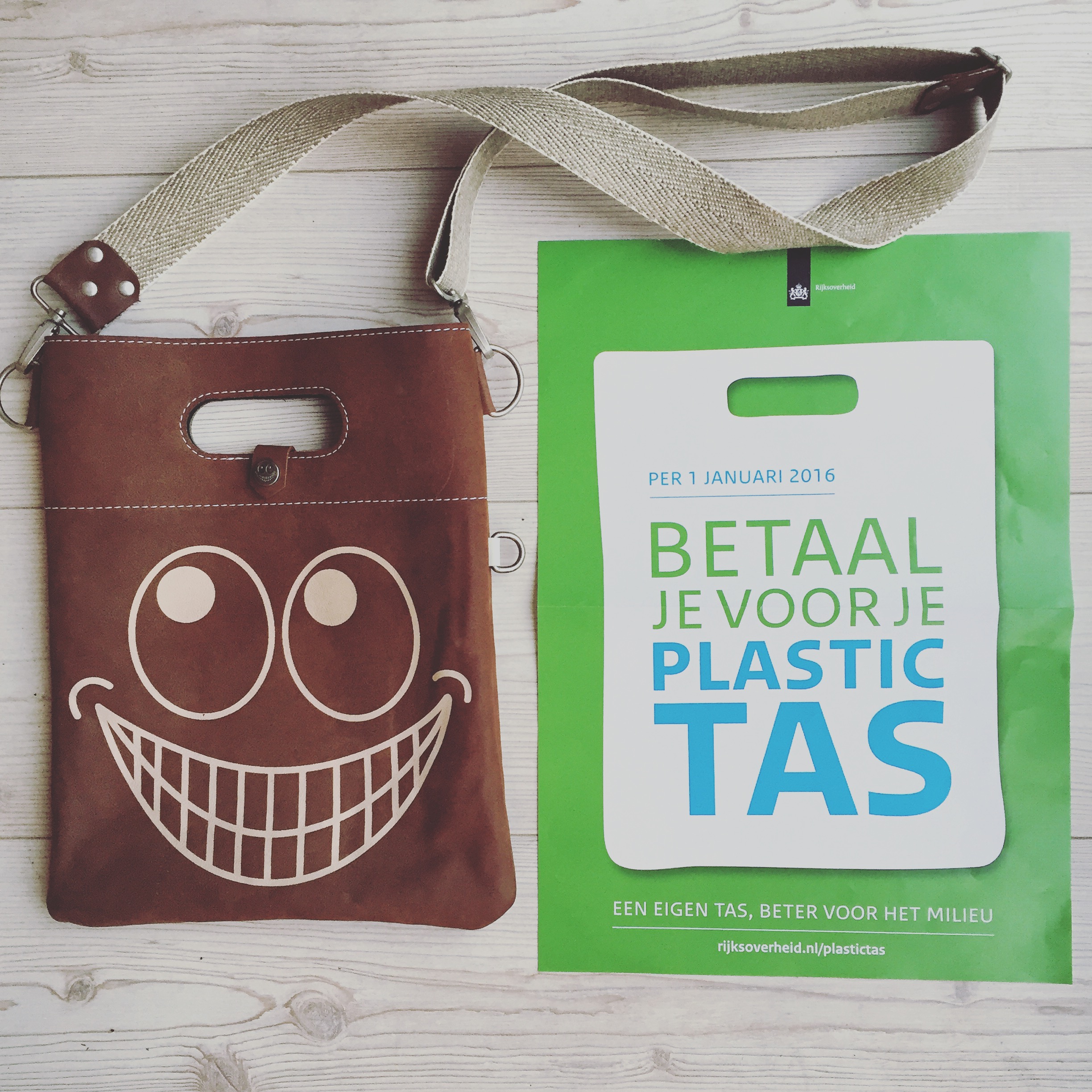 Als ondernemer ontving ik vorige week een brief met het dringende verzoek om per 1 janauri 2016 voor plastic tasjes te laten betalen. Dat gaat prima lukken. Mijn tassen zijn immers van leer en hebben geen gratis plastic tasje nodig. Het onderschrift van de poster, waar ik er twee van ontving, spreekt mij nog meer aan. EEN EIGEN TAS, BETER VOOR HET MILIEU. Nou zie je ook meteen waar ik model van de tas naast de poster vandaan heb. 🙂