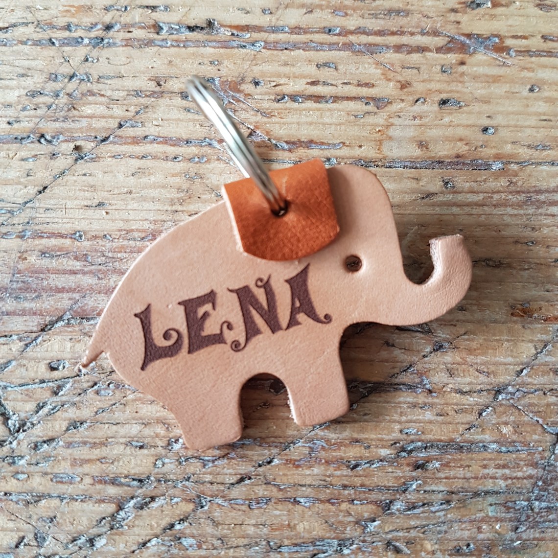 The key fob you see below is made of vegetable tanned leather engraved with a laser. They say that an elephant with its trunk up brings you good luck. Good reason to make one for my daughter. 🙂