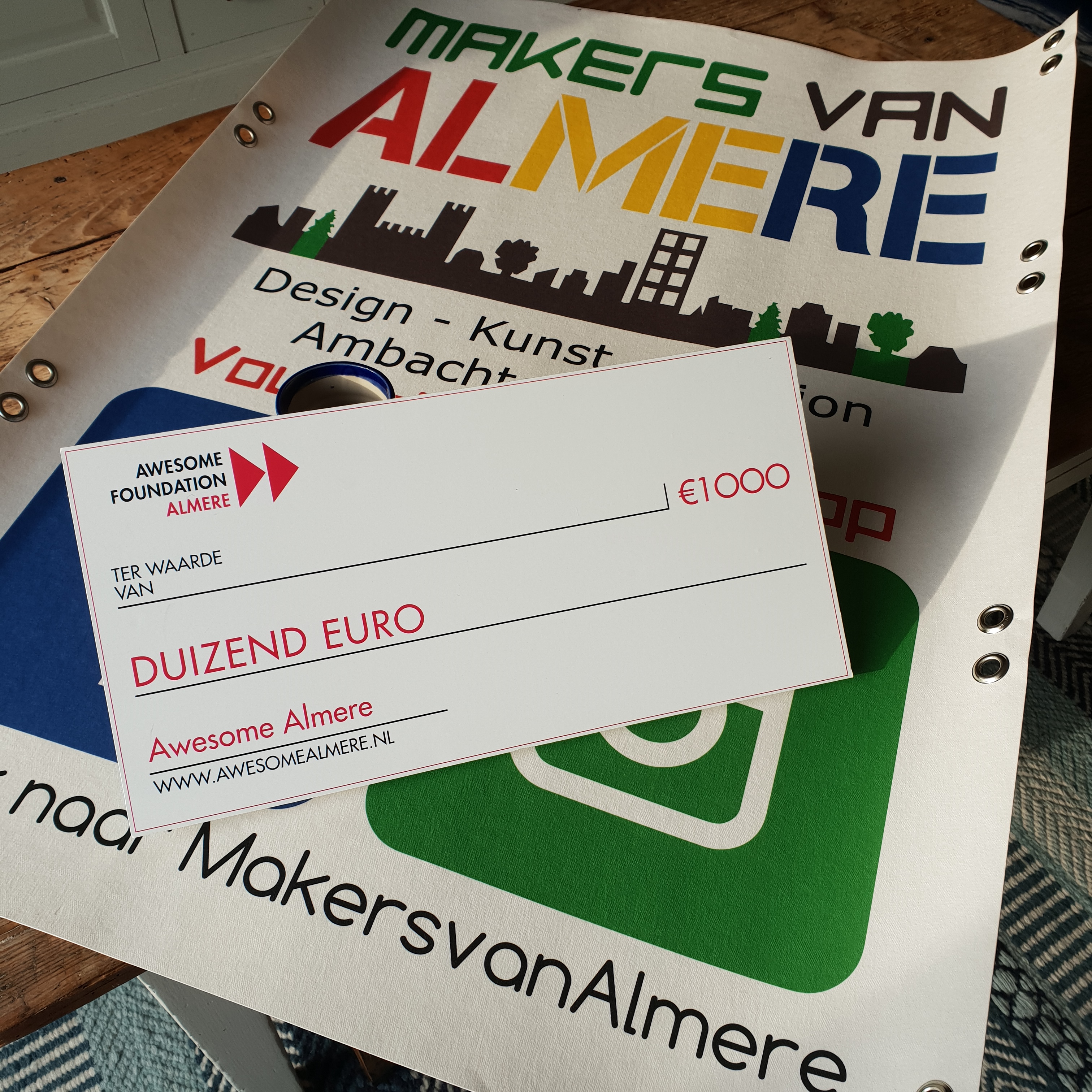 Op 19 september 2018 pakten Annabel, Amelie en Mathijs, namens Makers van Almere, het podium tijdens de Awesome Pitch Night. Met succes! De jury beoordeelde het plan als concreet, uitvoerbaar, leuk en een waardevolle bijdrage aan het centrum van Almere. De winst leverde 1000 Euro op voor de uitvoering van het plan.