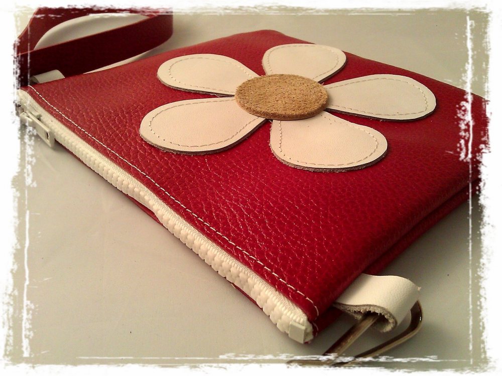 Handmade leather bag with flower power