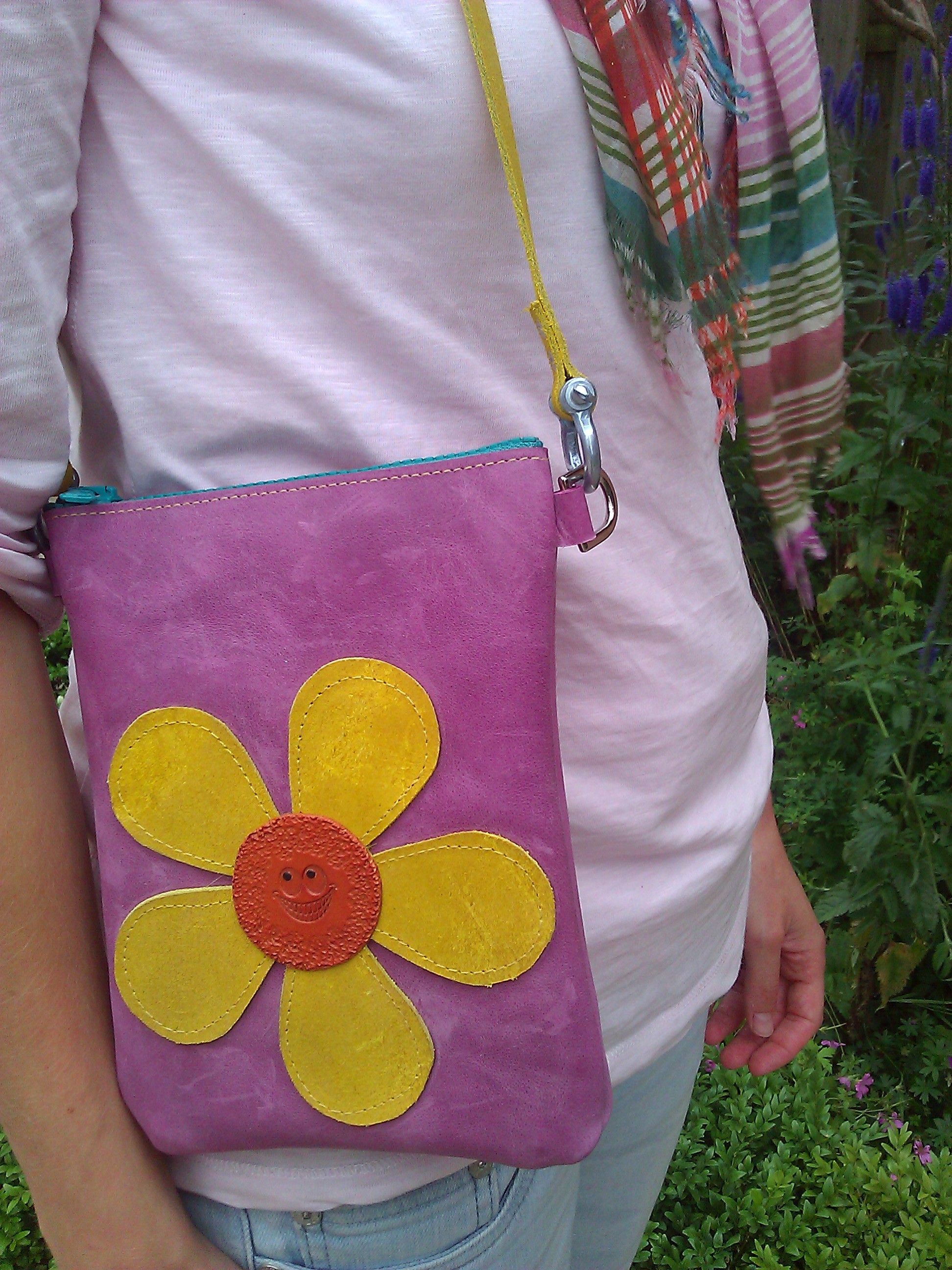 Bag#12 Handmade leather bag with Flower